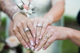 Before same-sex marriage was legalized, it used to be more common for LGBTQ+ couples to wear commitment rings on their right ring finger. This started to shift in 2015 when marriage was legalized in all 50 states. However, some couples still choose to wear their wedding rings on their right hand to acknowledge their history. At the end of the day, ring placement all comes down to your personal preference.