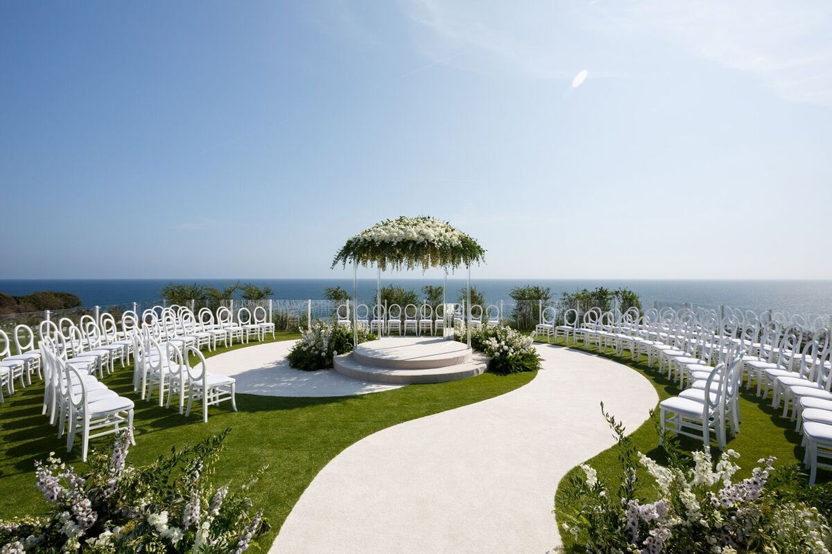 Alternative ceremony layouts are definitely “in” this year — especially round ceremonies. According to Cowie, they “ensure friends and loved ones are no more than a few feet away from the couple, creating a more intimate atmosphere.”