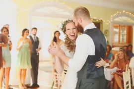 What about the first dance? This musical tradition of the bride and groom opening the dance floor comes from the days of old, when hosts of fancy balls would traditionally share the first dance. Then, the rest of the guests would be welcome to make their way to the dance floor. The tradition made its way into weddings, and ever since, brides and grooms have been kicking off the wedding reception festivities with a first dance.