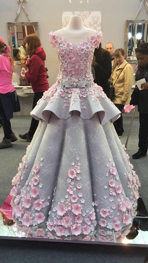 It took Morris 10 days to create the replica for the Cake International show at Alexandra Place in London on April 22. The cake version of the dress weight 264 pounds, of which 132 pounds of that were for fondant alone.