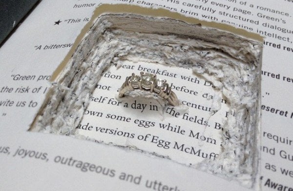 This marriage proposal works with everything from a fortune cookie to a cup of coffee to even a separate piece of jewelry.