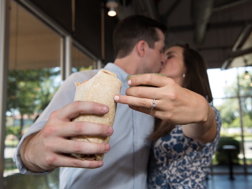 Chris Piwinski made the the decision to propose at the gourmet burrito chain after months of deliberation. He bought a ring back in January, but he just couldn’t decide on a place that was meaningful for both him and his longtime girlfriend, Natalie Neach. Then, in May, Chris made up his mind.