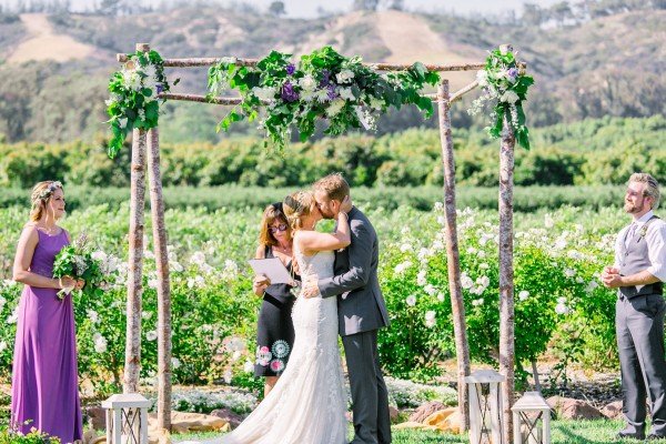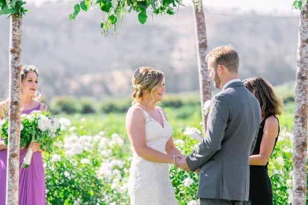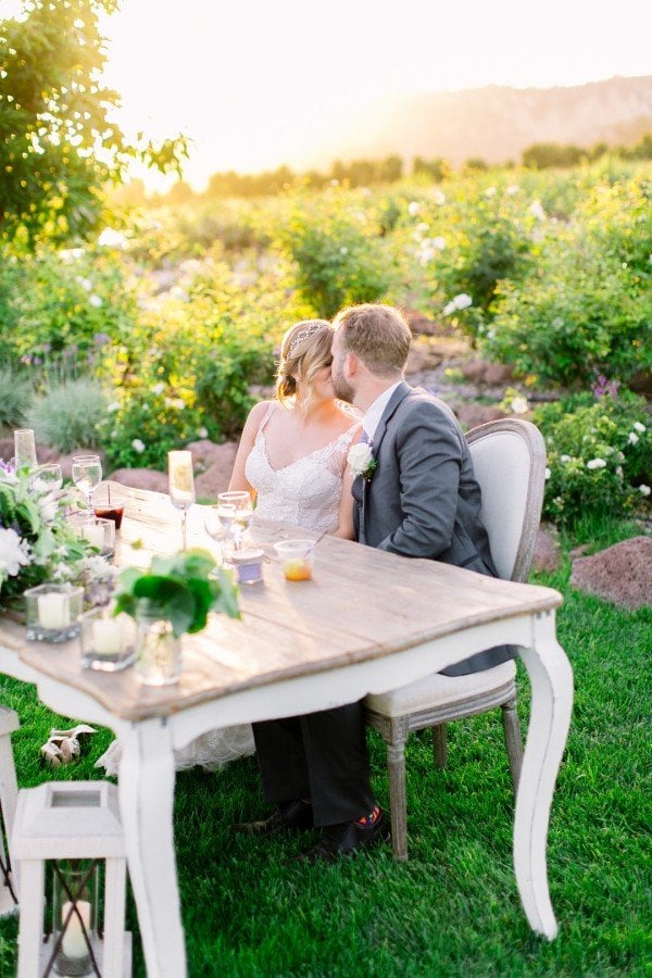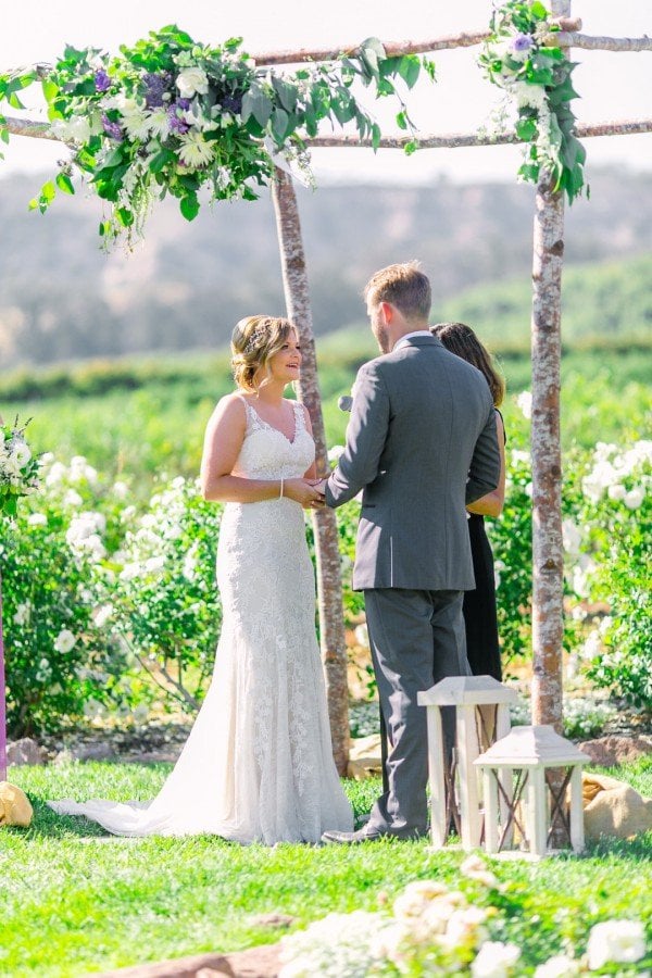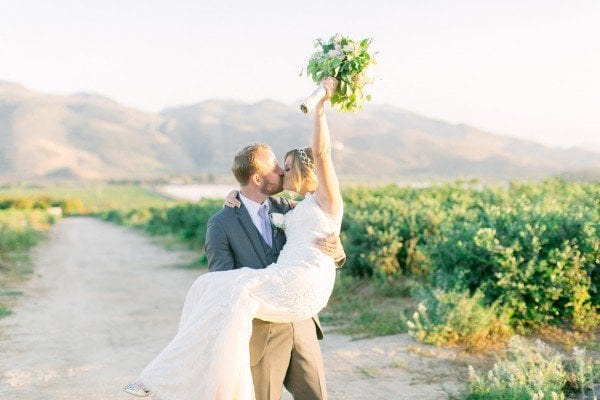Lindsey and Ryan said “I Do” at Gerry Ranch near Los Angeles, where, as the couple’s photographer Elizabeth Burgi put it, “it’s impossible to take a bad picture.” With expansive views of the surrounding foothills and Santa Rosa Valley, the couple and their guests were treated to a breathtaking location, made even better as the sun set on the reception.