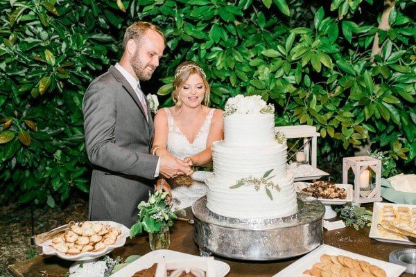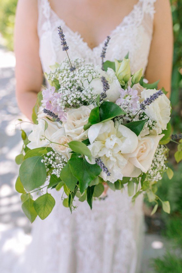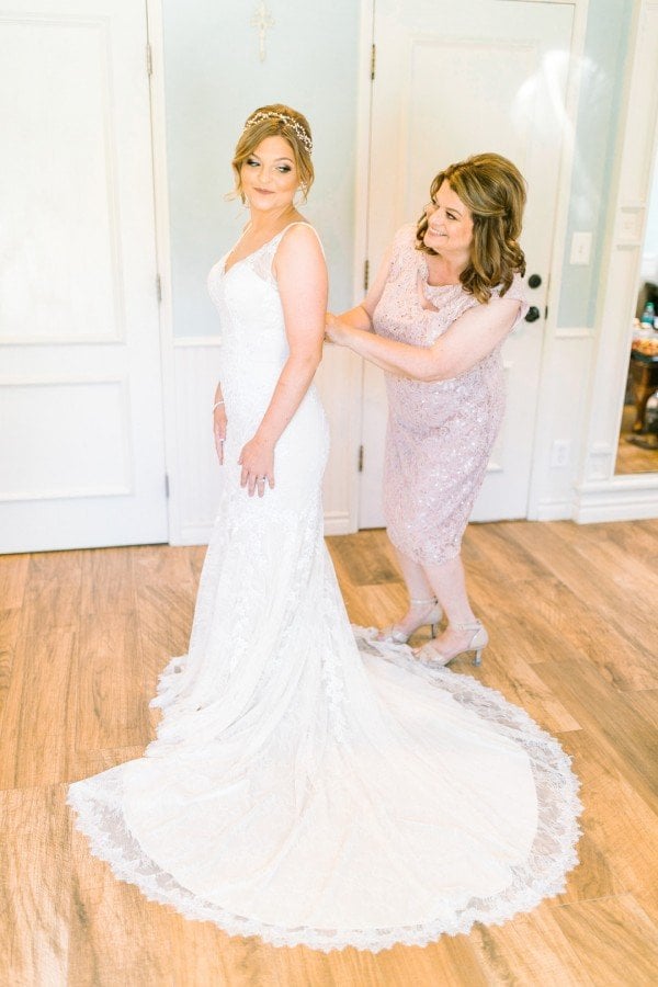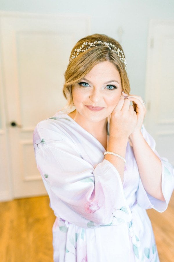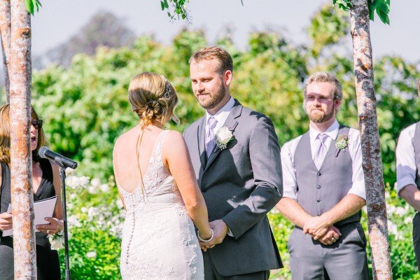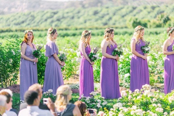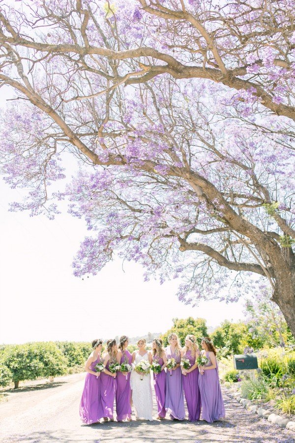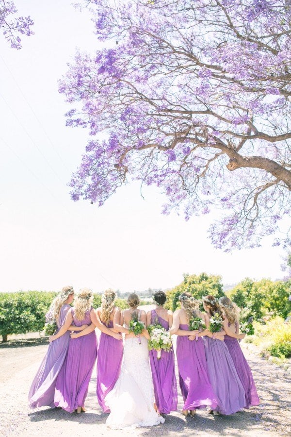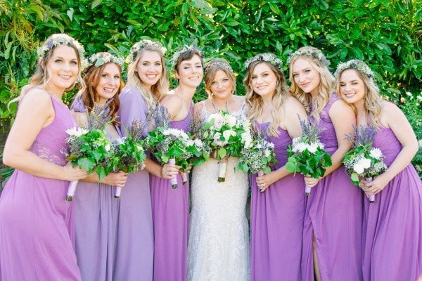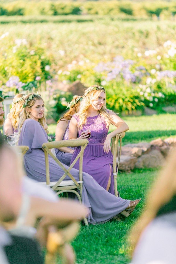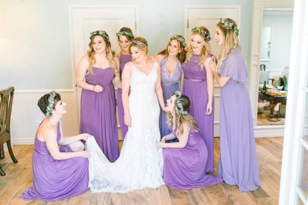 Lindsey’s gorgeous floral embroidered gown and the wisteria and dusty lilac of the bridesmaids’ dresses worked effortlessly to create a beautiful motif against the lush greenery of the grounds. For a finishing touch, each of the ladies wore floral garlands designed by Michelle Liotta of Shells Petals in their hair while the bride donned a more classic latticed tiara.