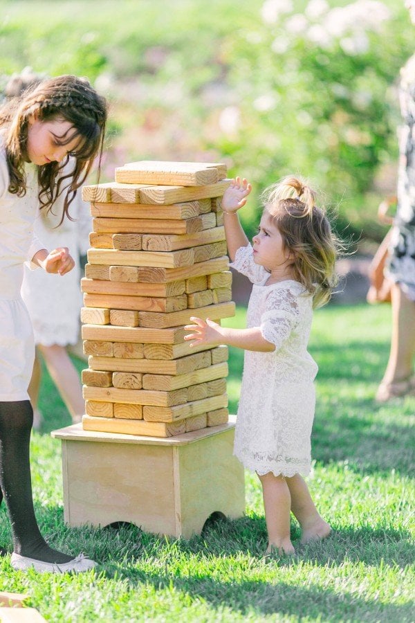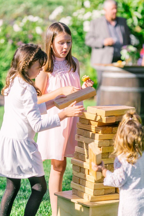 After the ceremony, guests enjoyed a cocktail hour as the sun began to set complete with fun lawn games such as Jenga and Cornhole. Kids and adults alike had a ball as they merrily waited for the bride and groom to make their first appearance as husband and wife. When it came time for speeches, joyful tears were shed but quickly wiped away as everyone took the dance floor. The festivities were complete with dancing the traditional Jewish horah and of course the tossing of the bouquet.