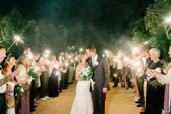The wedding came to a close with a photo finish as guests made a pathway of sparklers to send off the couple in a splendor of lights to begin their new lives together.