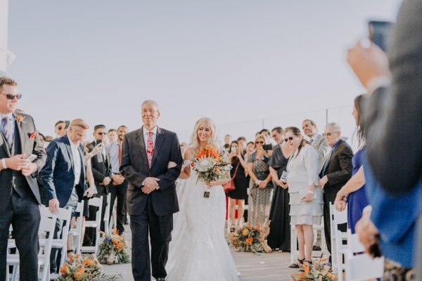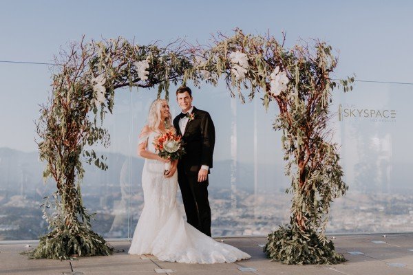 Jordan and Heather took their wedding to a whole ‘nother level — literally. In June, the couple said their “I Do’s” at OUE Skyspace Los Angeles’ observation deck, which has one of the city’s highest vantage points. If the 360-degree views of LA weren’t cool enough, what the newlywed couple did after the ceremony definitely is: a celebratory ride on the all-glass “Skyslide,” suspended 1,000 feet above the city.