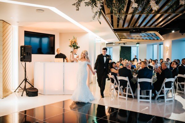 Event Venue:OUE Skyspace LA//Photographer:Monique Dao Photography//Event Planner: Samantha Rae Events//Floral Design:Tutta Bella Florist//Catering:LA Spice//Cake:The Butter End//Drinks:Paradise Bar Events//DJ:VOX DJs//Makeup Artist and Hair Styling:Lola + Liv MUA//Rings:Demarge//Wedding Dress Designer:La Sposa//Rentals:Bright Event Rentals//Glass Artist for Unity Ceremony Vase:Unity in Glass