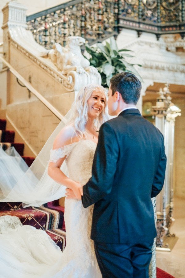 Since the couple first met in Australia — the groom’s homeland, where the bride was studying veterinary medicine — they incorporated colors and flowers inspired by the palate of the setting sun over the red outback of Australia. Monique Dao captured the result, which was a stunning mix of warm tones and the venue’s white and gold interior. See a few of our favorite pics from this amazing real wedding, below!
