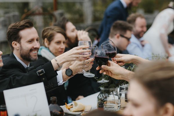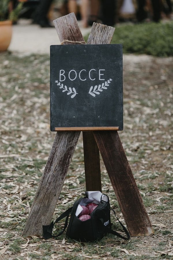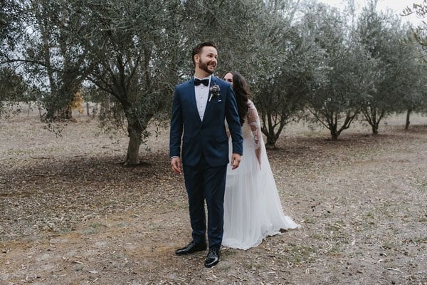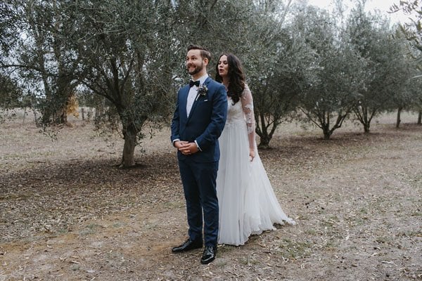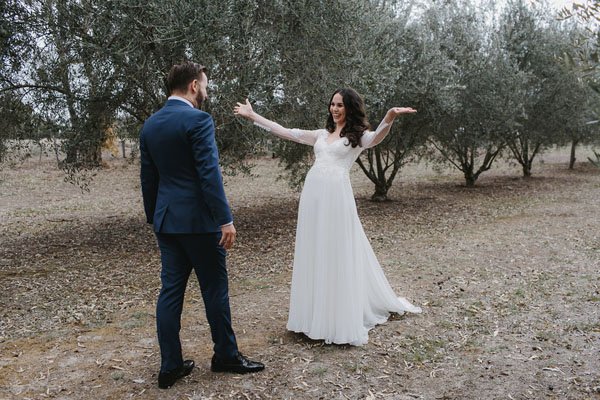 The big day came and was forecast for only 18 deg and overcast with a slight chance of rain, pretty cold for summer in central Victoria! It was even drizzling in the morning. But thankfully it stopped drizzling for the ceremony and when the reception started and we all took our seats, the sun came out from behind the clouds and at that moment we both felt like we were back in Italy, sipping on Aperol Spritz and feasting on antipasto platters, surrounded by friends and family. This was definitely our favorite moment, and I’ll never forget it.”