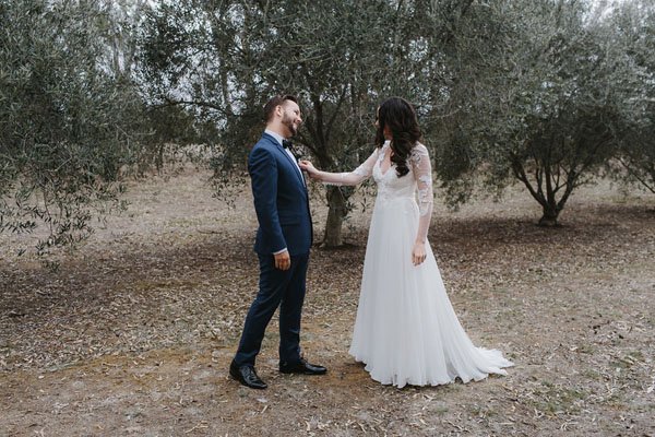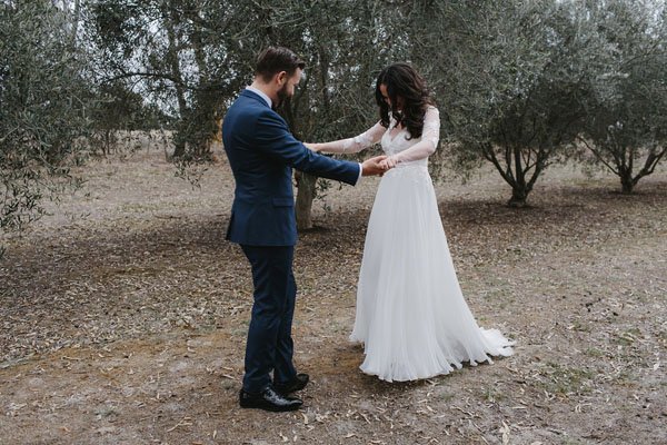 Some weddings are so charming that as soon as you see the first few photos you’re already hooked! That is definitely how we felt upon first seeing Amy and Bronson’s wedding in Victoria, Australia. Held at her parents’ property–the charming Providence Gully–this real wedding was intimate and casual yet perfectly whimsical and elegant at the same time. Captured by Oli Sansom Weddings, we’ll let the beautiful bride tell you even more about their special day (and romance!).