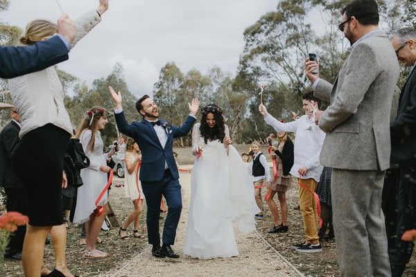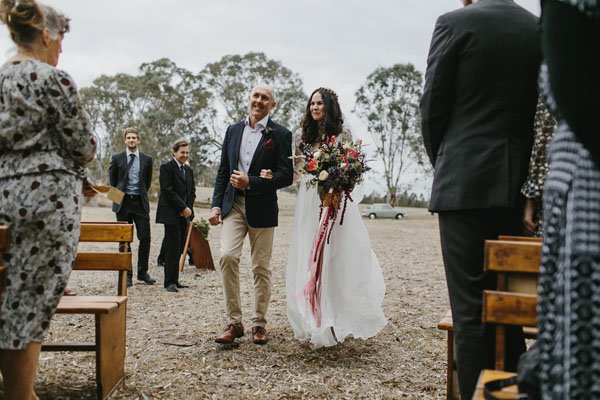 Photographer: Oli Sansom Weddings//Musicians: Tobi Music//Officiant: Gaye Jenkins//Equipment Rentals: Kyneton Hire//Specialty Foods: Fat Poppy//Floral Designer: Farmyard Flowers//Cinema and Video: Nathan Kaso Weddings//Event Venue: Providence Gully//