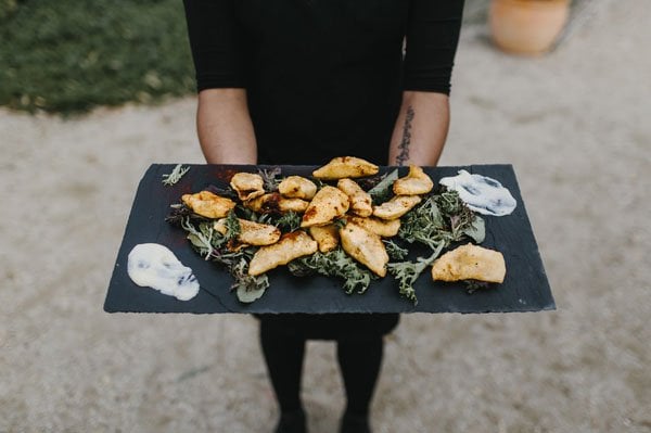 “We decided early on to allowed the beautiful location and venue define the aesthetic of our day. With its gorgeous olive grove, pomegranate orchard and fully functioning vegetable garden, the day felt very ‘farm to table’ with a twist of Mediterranean. We were heavily influenced by our travels overseas and incorporated our favorite elements e.g. sitting down at long tables of Spanish tapas, sipping on Italian aperol spritzers in the sun and the scent of Moroccan orange blossom in the air.”