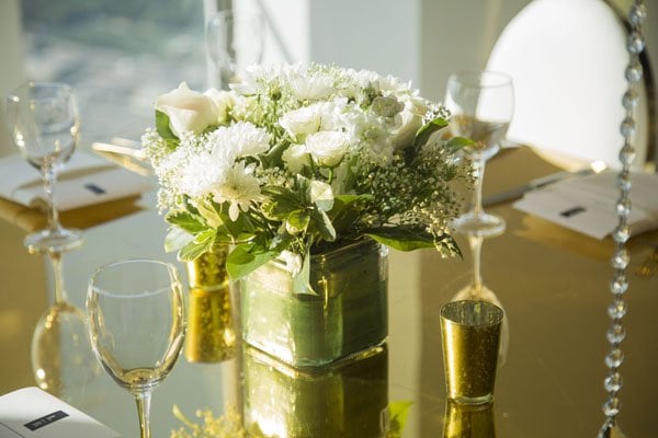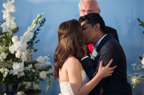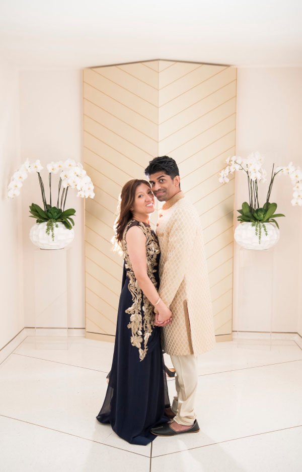 With the help of the talented event planners and florists at Aquafuzion, the couple wanted an elegant and intimate wedding that would allow their families to get to know one another. They also wanted a setting where their unique backgrounds and cultures (Leevan is from the Philippines and Raj is from India) could be highlighted, including a garland ceremony and change to traditional Indian attire. Leevan found her dream wedding dress at BHLDN, and was able to get it delivered in one week and get it tailored just in time for the wedding.