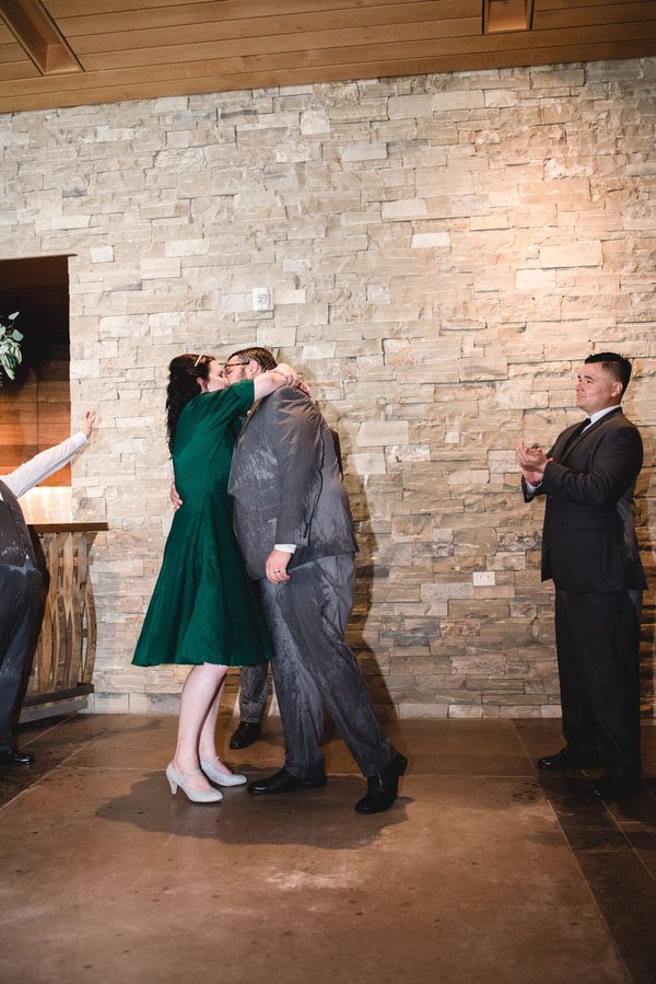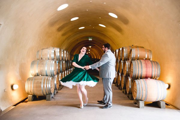“When I met Danyele and Ethan I was so excited to hear about their non-traditional wedding plans. They are two of the coolest and cutest and NICEST people you will ever meet. They wanted their Presqu’ile Winery Wedding to show their personalities, interests, and represent them- and it sure did! Most of all they wanted to create a super fun day for their friends and family. Danyele is not your everyday bride: She’s bold and beautiful and swings to her own beat. She is incredible inside and out and it’s so easy to understand why Ethan loves her so much. He knows there isn’t another girl like Danyele in the whole world and how special she is- and as their wedding photographer I could see that, too. Danyele wore a vintage-inspired green wedding dress with silver sparkling pumps and a tulle underskirt that looked adorable when she twirled!