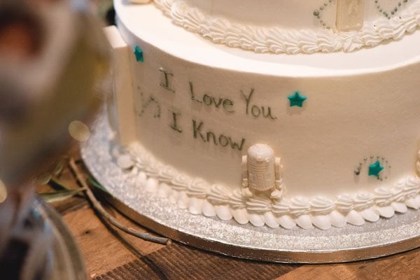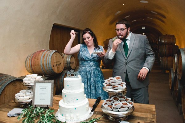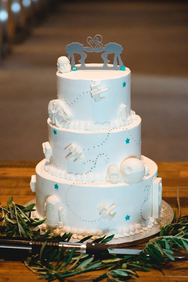 We don’t personally know Danyele and Ethan, but we REALLY wish we did. We haven’t had a real wedding make us smile THIS much since we don’t know when. Held at the Presqu’ile Winery in Santa Maria, California, and captured perfectly by Looking Glass Photography, we can’t help but love every minute of Danyele and Ethan’s non-traditional wedding. From the TWO vintage-inspired dresses Danyele chose to the Disney embellishment on her bouquet and even their Star Wars wedding cake, this real wedding had us as soon as we saw it in our inbox. More from their photographer, below: