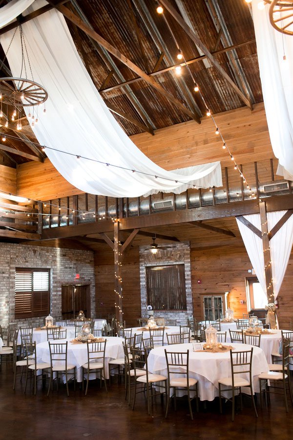 “Vanessa and Jason were married at The Berry Barn, a very rustic, full of warmth, charming venue about an hour from New Orleans. I enjoy being a city girl, but I did grow up in Kentucky, so being out in the country fits for me as well. As soon as we pull into The Berry Barn drive I’m always instantly enamored with the animals, zebras, donkeys, llamas, you name it! The scenery at Berry Barn with the dark colored wooden barn is breathtaking! The Berry Barn is a dream come true for any bride wanting a barn or rustic feel for the wedding. There is so much character built into it before even adding decor. I loved the drapery that they installed over the dance floor area. It looked fantastic and added another layer of warmth and coziness.