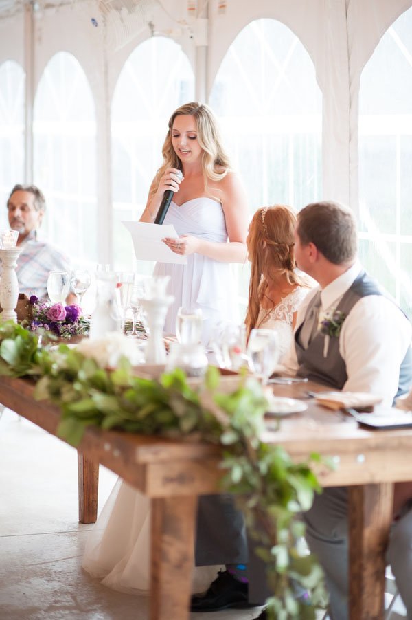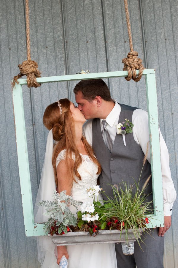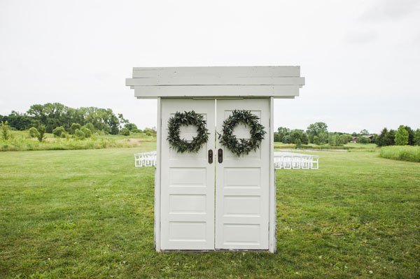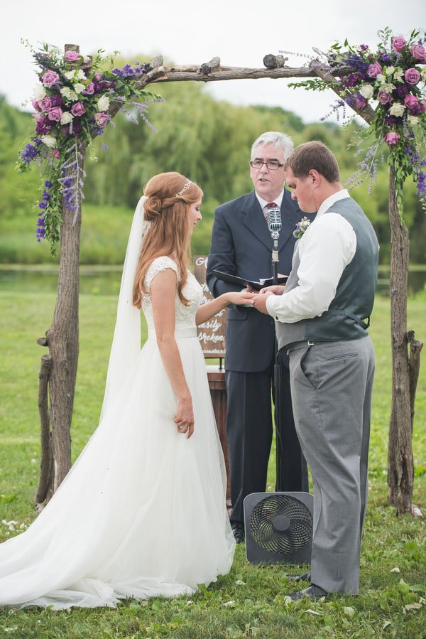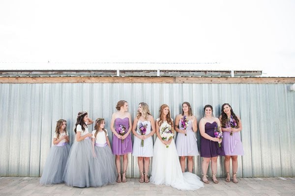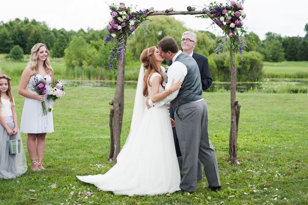 Shannon and Shawn’s wedding at Emerson Creek Pottery and Tea Room in Illinois had pretty much everything we love about rustic weddings. With shades of grey, pink, violet and lavender (the bride’s favorite color), guests were welcomed into the ceremony by whitewashed doors decorated with vinery wreaths and photos of the couple throughout the years lining the aisle. They said “I Do” by the venue’s pond and danced the night away in the old barn before gathering around the fire pit for s’mores. Captured by Elite Photo, you can see more of our favorite pics from Shannon and Shawn’s big day, below.