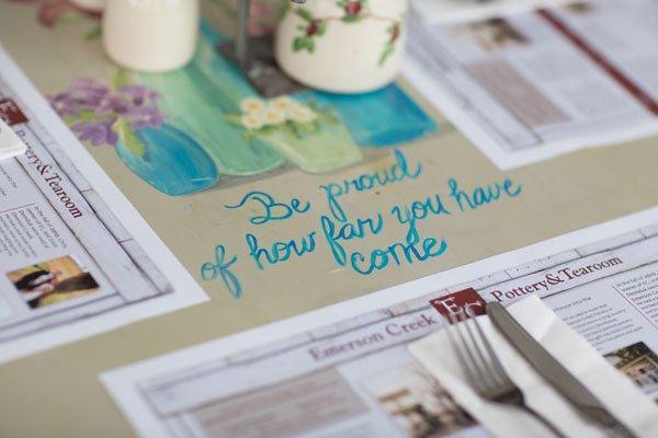 Photographer: Â Elite Photo//Dress Store: David’s Bridal//Event Venue: Emerson Creek Pottery and Tea Room//Design and Decor: Joanna Goss//DJ: Mike Staff Productions//Cake Designer: Nothing Bundt Cakes//