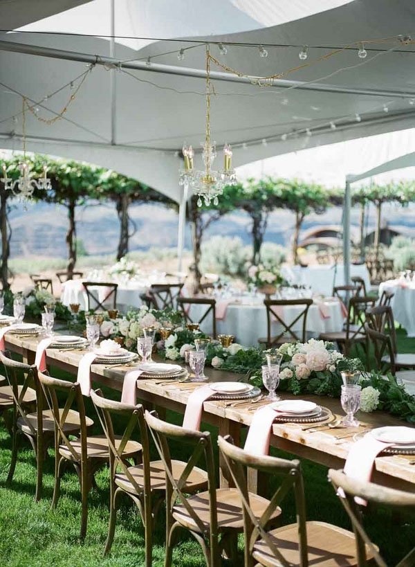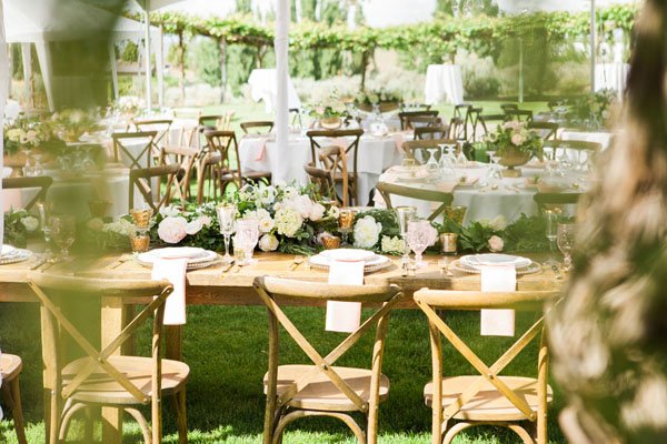 On a hillside overlooking the Columbia River, Jennifer and Nick said “I Do” alongside their closest family and friends at the Cave B Winery. With local details like Washington shortbread cookies and Woodinville Whiskey, this real wedding let the gorgeous backdrop take center stage. Captured by Heather Mayer Photographers, this pink, green, and ivory vineyard wedding is not to be missed! See more of our favorite pics below, and congrats to the happy couple!