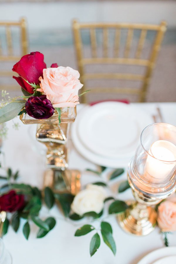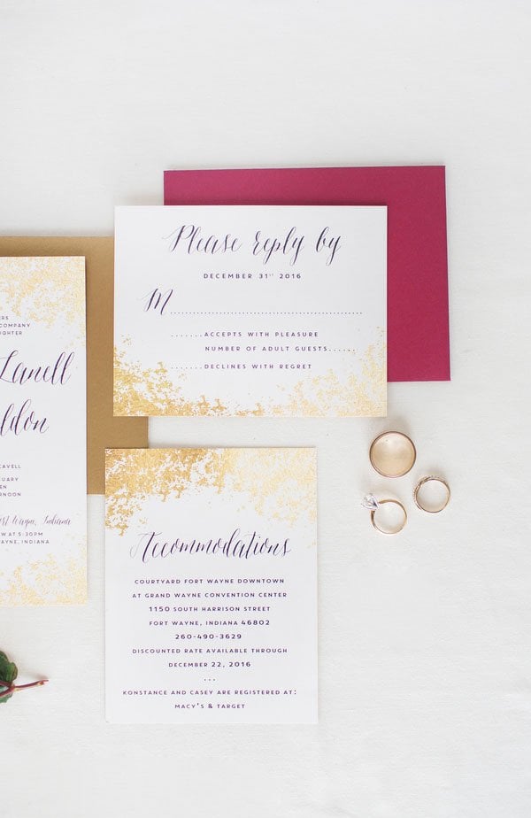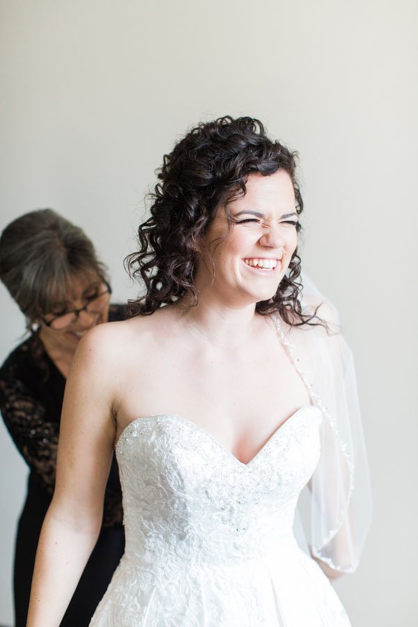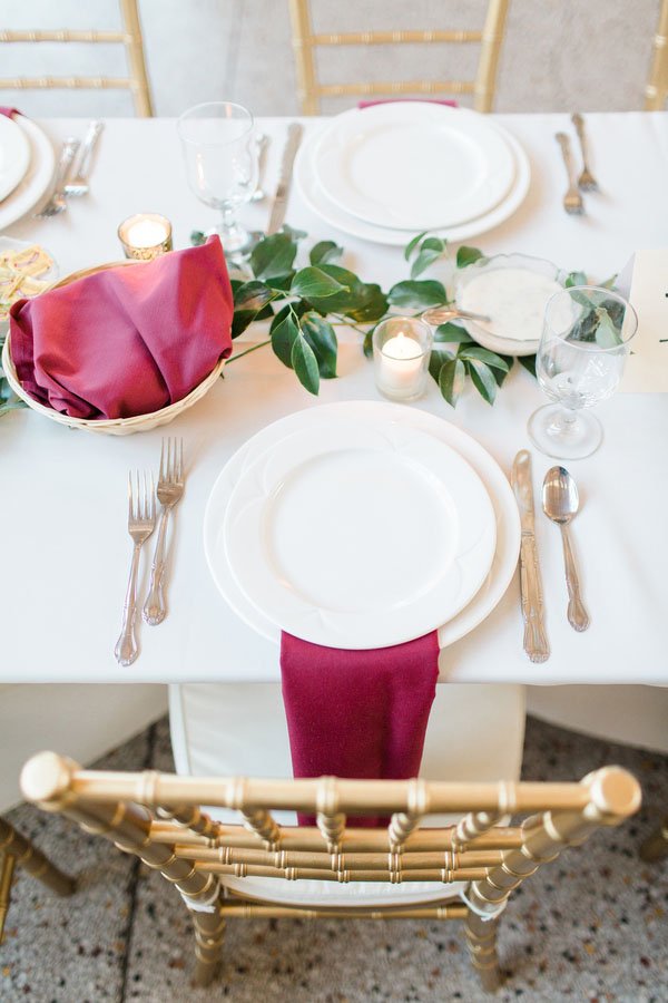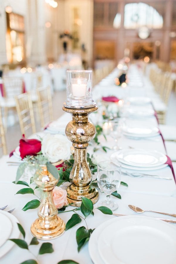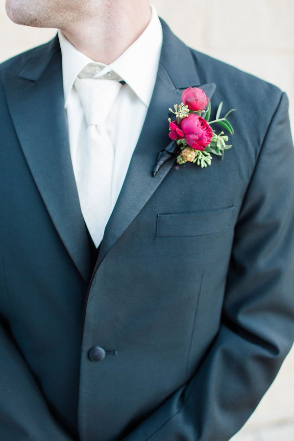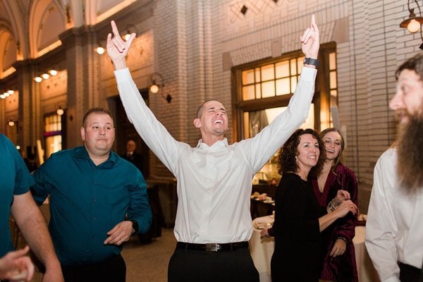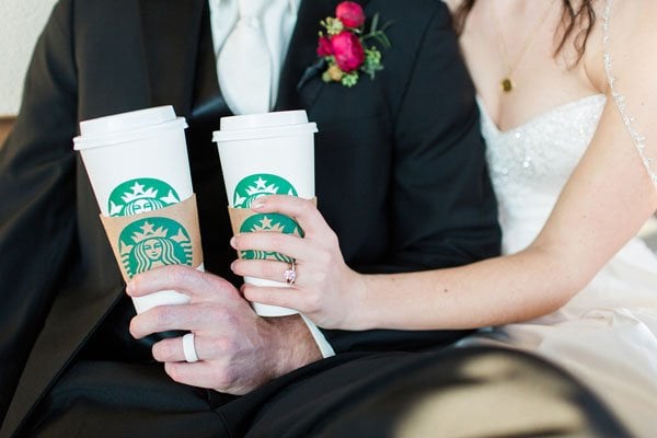We’re a little hot right now in Southern California, so we wanted to cool down a bit with this January real wedding from Arielle Peters Photography. Despite frigid temps, Konny and Casey brought so much warmth to the streets of Fort Wayne, Indiana. With a Starbucks run and their first kiss while “flying the W” (I think it’s really cute how they stole that moment of privacy with the flag!), this couple’s wedding reflected who they were down to the smallest details! Even their choice of venue, the Baker Street Station, spoke for itself! With tall, arched ceilings, white brick walls, and speckled tiles, their gorgeous pink and plum colors really popped. It’s already making us feel cozy. 🙂