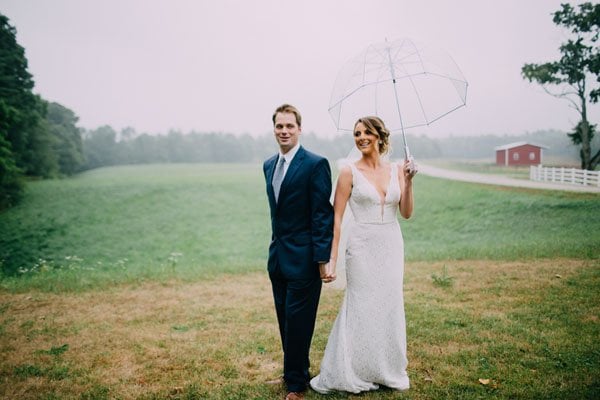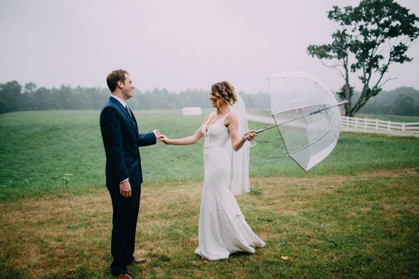 Alex and Bryleigh’s wedding at Pineland Farms in Maine totally proves that while you might hope there’s no rain in your wedding day forecast, it can make for the PRETTIEST photos. Or at least it does when you have Maine Tinker Photography capture it!