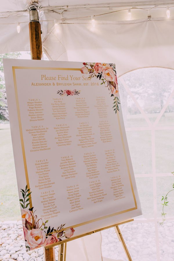 “Alex and Bryleigh decided to tie the knot on a misty, drizzly perfect day! Bryleigh paid attention to every detail small and big. They decided to do a first look which was picture perfect and wonderful for timing and weather. And as a bonus they both had matching umbrellas for the day so it made it extra sweet. They had their ceremony at the beautiful gardens at Pineland Farms. A ceremony in a beautiful garden is every photographers dream, plus the set up was slightly different than other ceremonies so it gave me the opportunity to have different angles to shoot! The night was filled with lots of beautiful decor from the talented Amy Collins of Black Tie. There were lots of speeches, yummy food and drinks by candlelight, great music and the crowd pleaser our Maine photo camper.”